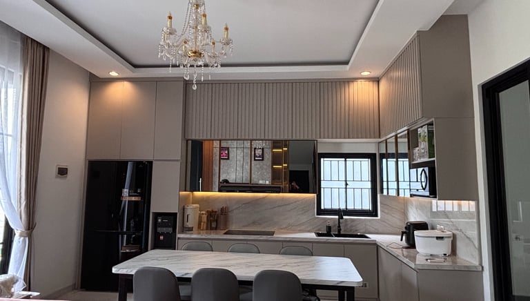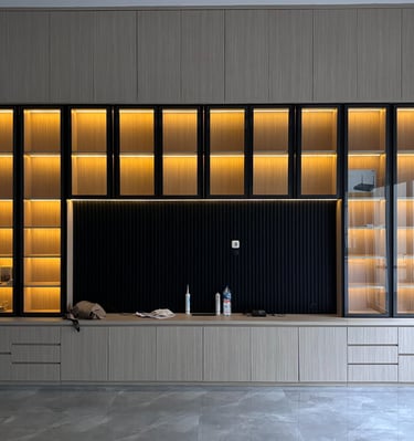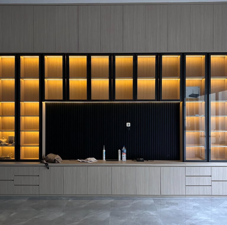 Kami menyediakan jasa desain custom interior, sampai tahap pembuatan dan pemasangan.