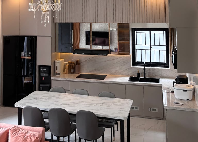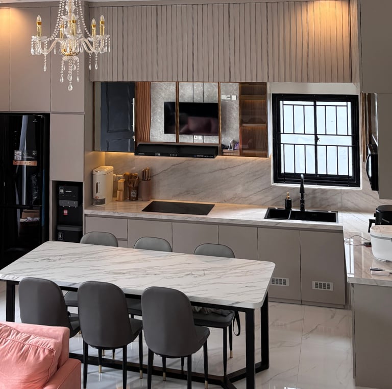 Produk kami meliputi kitchen set, bedroom set, interior kamar hotel, interior kantor, panel dinding, flooring dan lainnya.