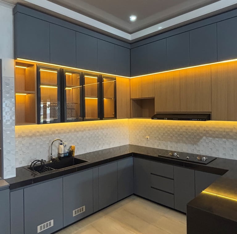 Kenyamanan dan keamanan dalam memasak dapat kami sediakan dengan produk custom kitchen set xenix. anda bisa desain sendiri kabinet atas, kabinet bawah dan counter top yang cocok dengan selera anda.